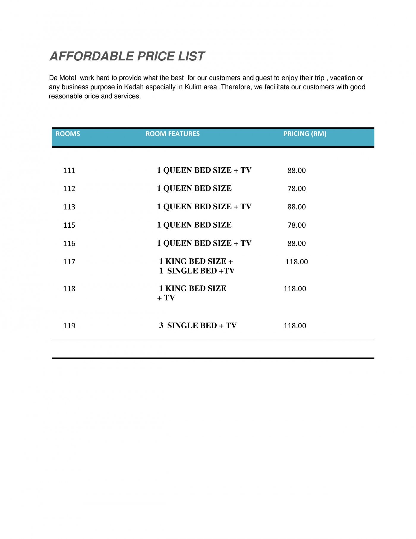 Pricelists of DEMOTEL KULIM No 65, Jalan Cengal Indah 3, Taman Cengal Indah - Photo 1 of 1