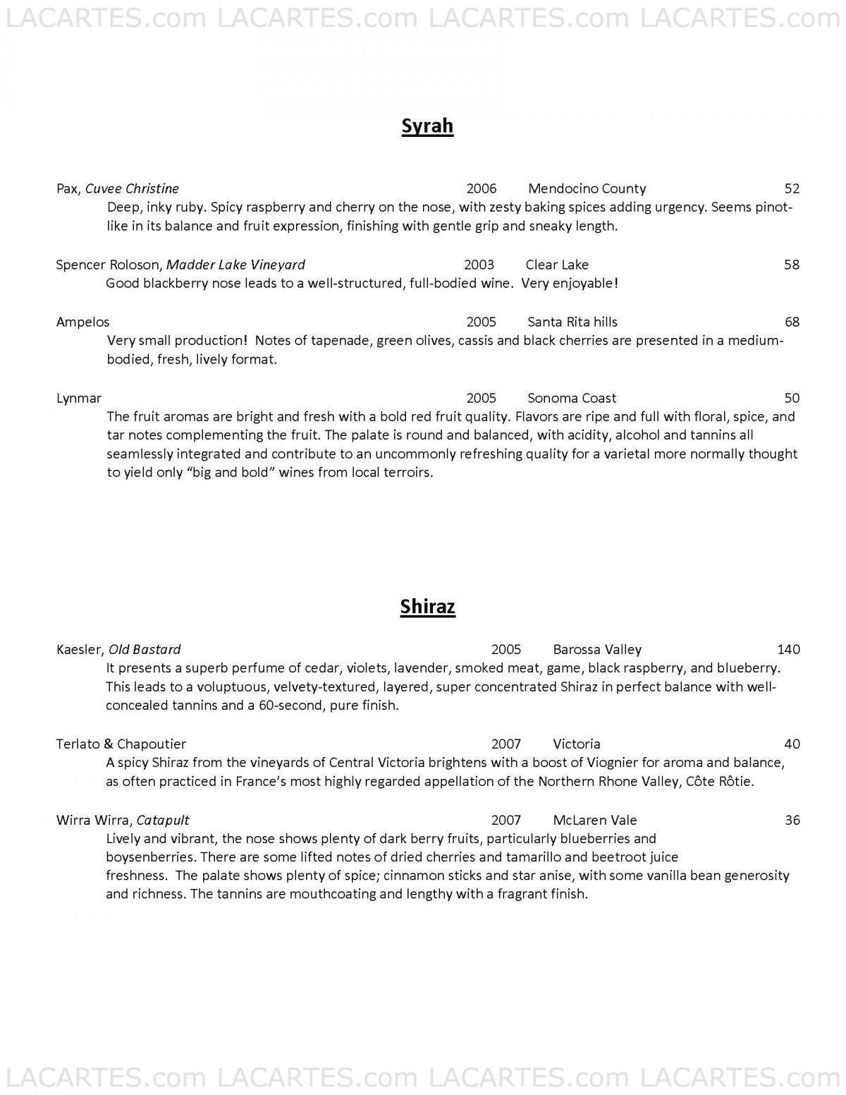 Pricelists of Bank Lane Bistro 670 Bank Lane - Photo 5 of 19
