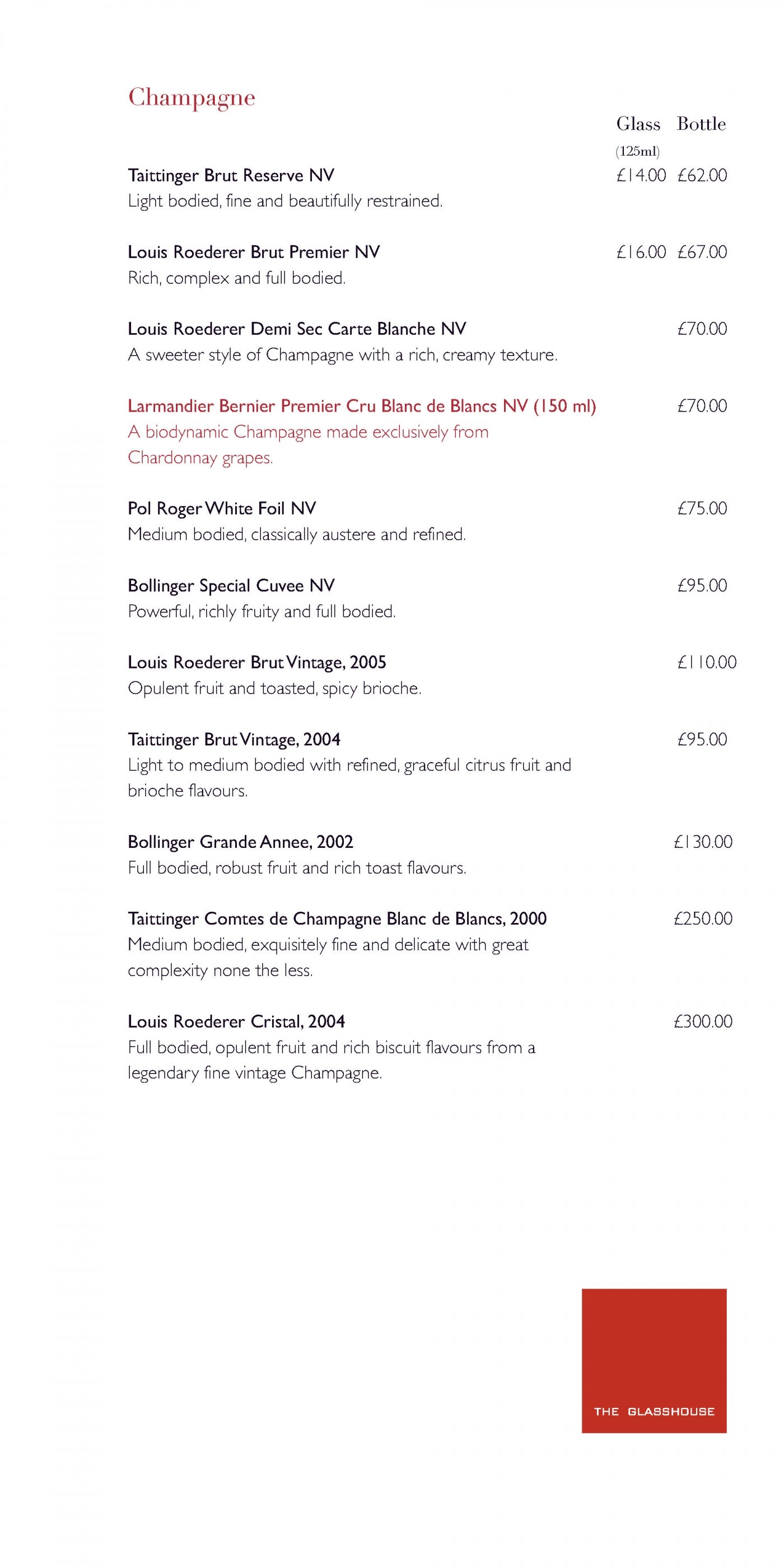 Pricelists of The Glasshouse Restaurant at The Grove THE GROVE | London's Country Estate - Photo 18 of 27